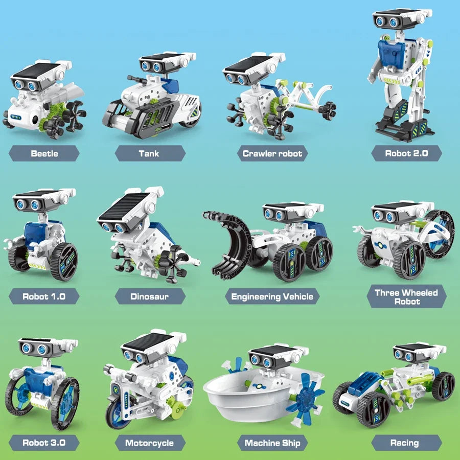 O 12 em 1 Robot Toy é um kit completo que inclui peças fáceis de montar, com instruções claras para garantir uma montagem simples e divertida. Cada robô pode ser montado e desmontado facilmente, permitindo que as crianças explorem novas construções a cada vez. O kit também é alimentado por energia solar, tornando-o uma escolha ecológica e divertida para os jovens engenheiros.